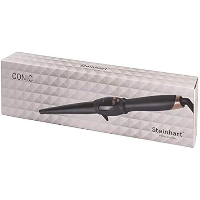 Discover the TENACILE STEINHART CERAMIC-TOURMALINE CONICAL straightener (13-25) in black color. This cordless straightener offers 5 adjustable temperatures from 130°C to 230°C for all hair types. It has an automatic shut-off function and an ionic function for shiny, frizz-free hair. Its 2.5-meter rotating cord facilitates its use. The Seller confirms that its products comply with all applicable laws and are only offered if they comply with Joom's policies and European laws on product safety and conformity.