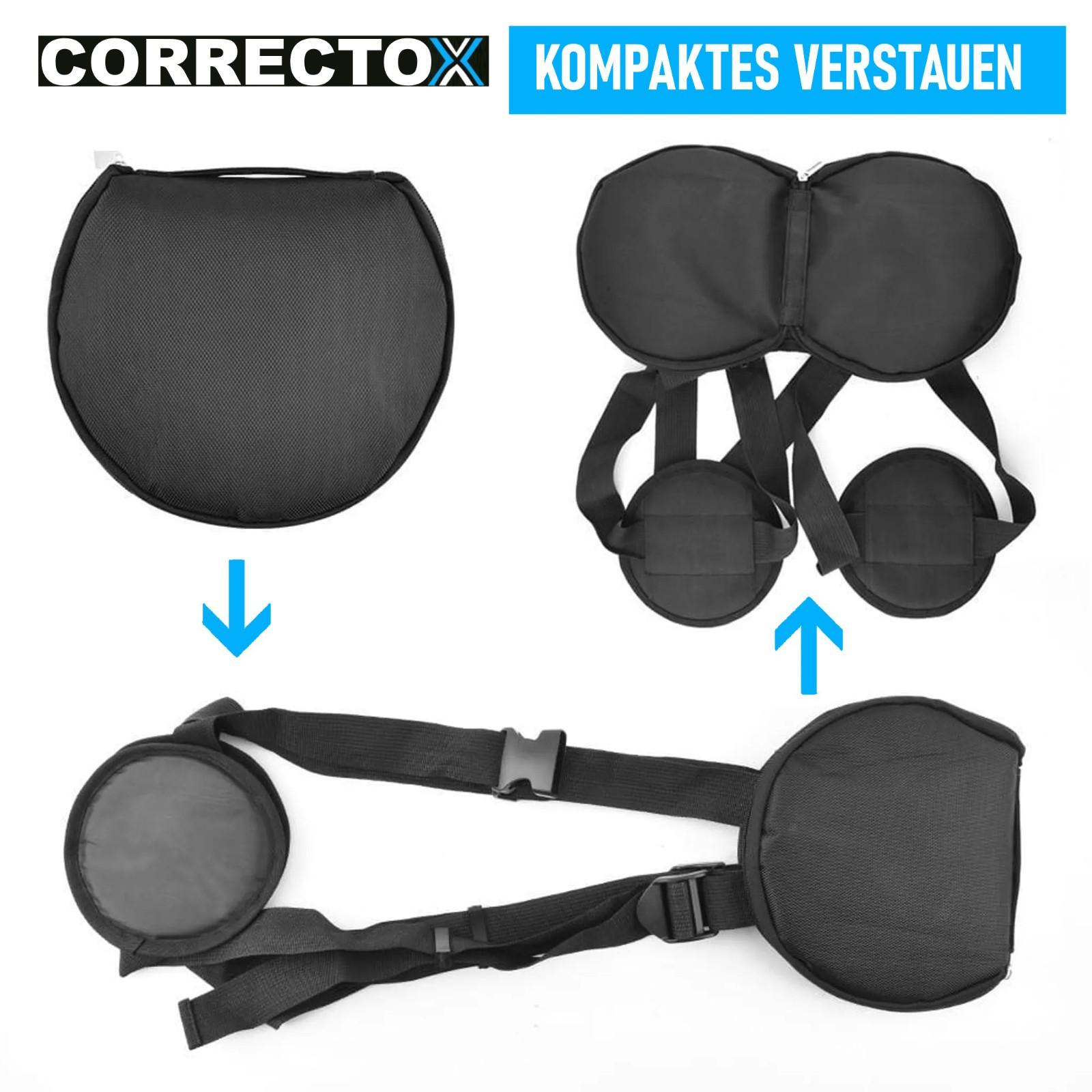 CORRECTOX is slim, lightweight and handy, so you can easily use it on the plane, train, in the office, in bed, at the stadium or even during yoga and meditation. It is your faithful companion for a healthy posture, no matter where you are. Thanks to the integrated bag, the posture trainer can be stored in a space-saving manner.