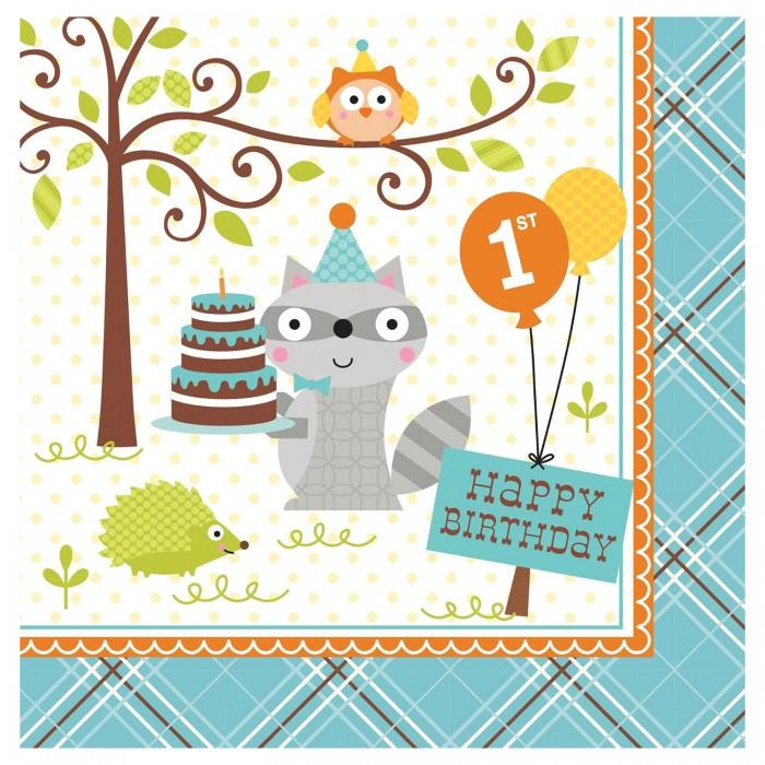 Creative Party Paper Woodland 1st Birthday Napkins (Pack of 16)