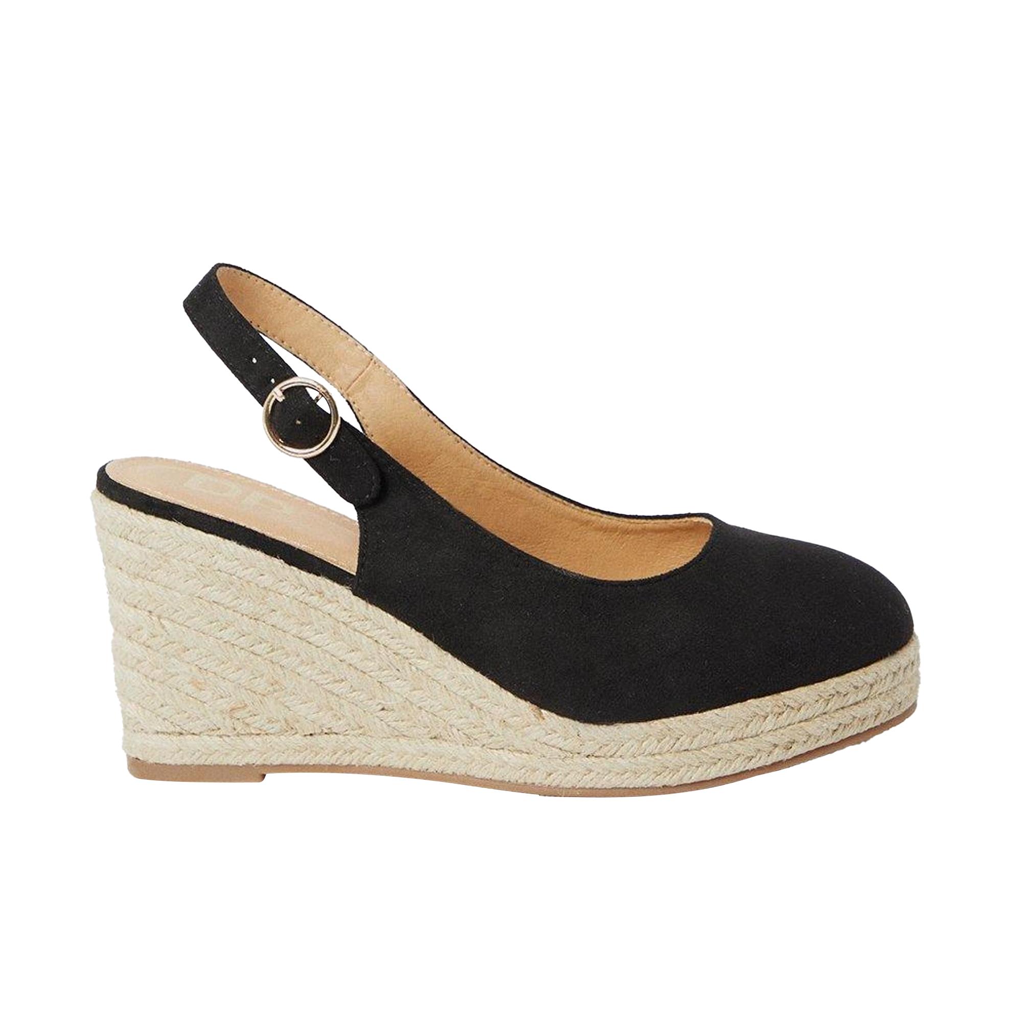 -Upper: Synthetic. - Lining: Synthetic. - Outsole: Synthetic. - Sling Back. - Wedge Heel. - Heel Height: 3.3in. - Design: Plain. - Fastening: Buckle. - Fit: Wide.. - UK size :5 UK, FR Size :38 FR, ES Size : 38 EU , DE Size: 38 EU, IT size: 38 EU, US & CA Size: 7. - UK size :4 UK, FR Size :37 FR, ES Size : 37 EU , DE Size: 37 EU, IT size: 37 EU, US & CA Size: 6 . - code: UTDP1814