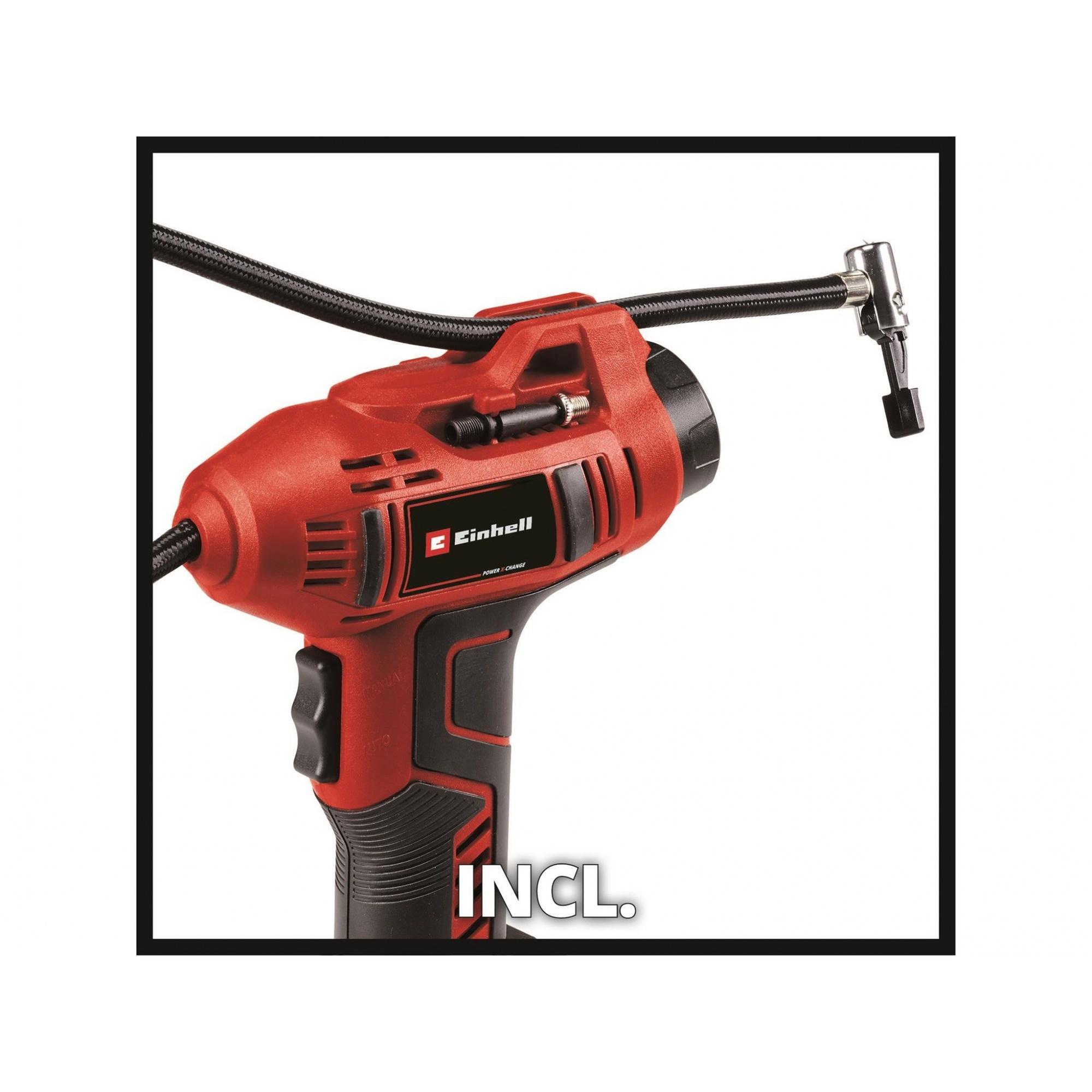 - The Einhell CE-CC 18 Li-Solo Power X-Change Car Air Compressor is ideal for smaller jobs such as inflating car tyres, wheel tyres or balls.