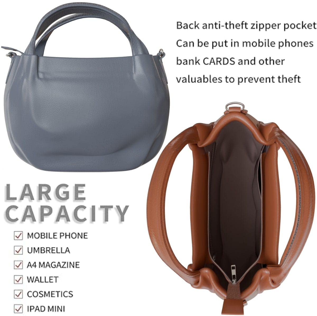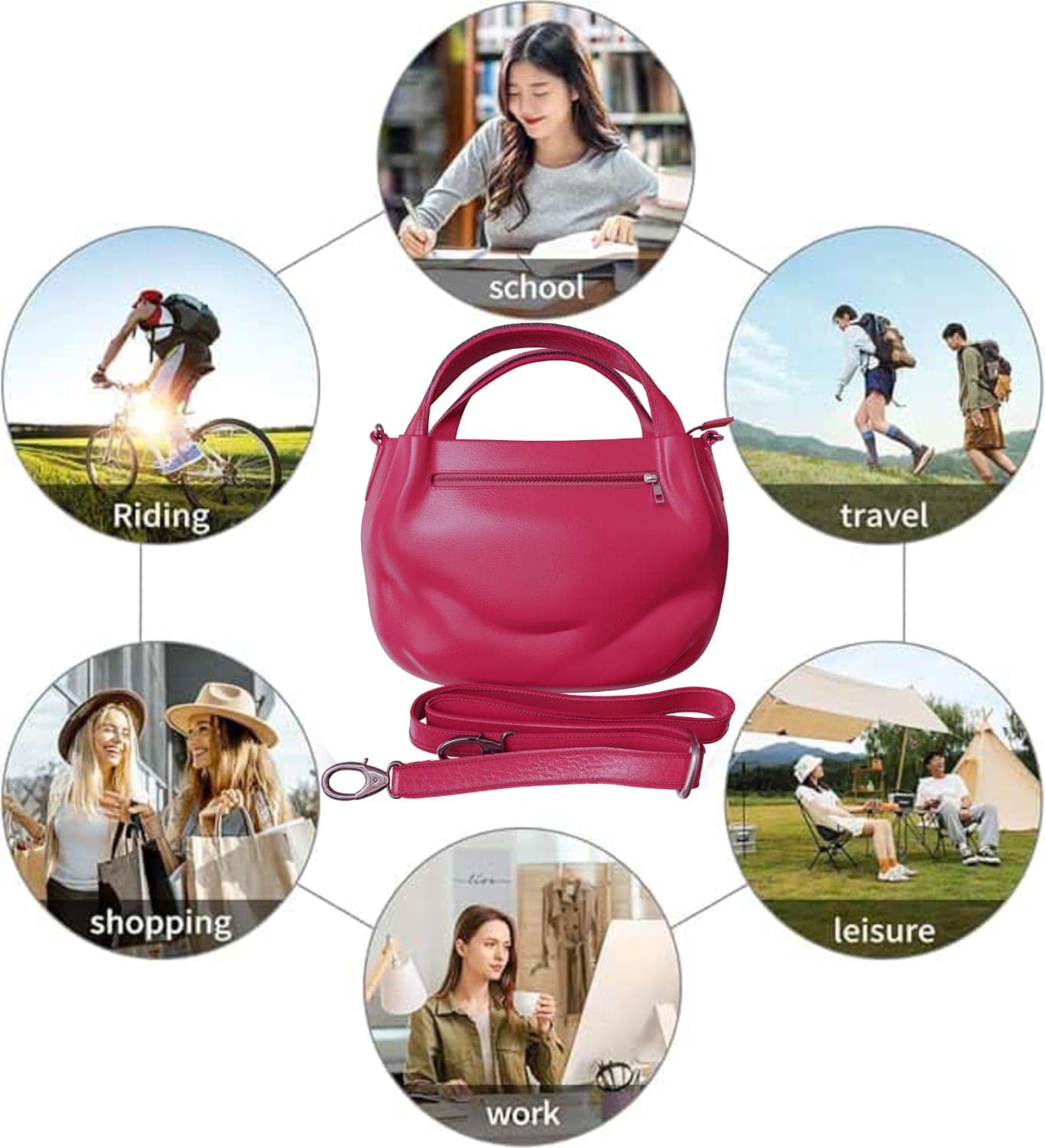 Available in a selection of stylish colors including black, fuchsia, gray, brown, taupe, dark blue, red, green, gold, silver, orange, turquoise and purple, the bag suits every occasion and outfit.
