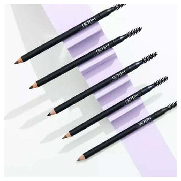 PRODUCT FEATURES Powder eyebrow pencil;(crayon + brush) to fill;and draw the eyebrows.;GOSH EYEBROW PENCIL offers an application;soft and powdery with a pretty and natural pigmentation.;It allows for long wear and holds even on oily skin.;GOSH EYEBROW PENCIL can & The Seller confirms that its products comply with all applicable laws and are only offered if they comply with Joom's policies and European laws on product safety and conformity.