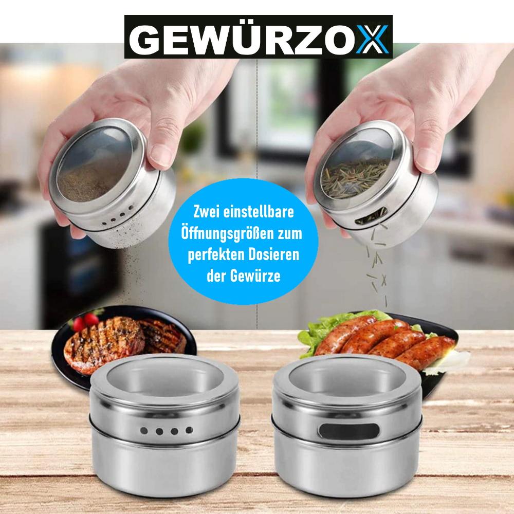 ☑️ EYE-CATCHER - The GEWÜRZOX spice shakers can be attached to all magnetic surfaces; whether on the supplied stainless steel plate, the refrigerator or the extractor hood.