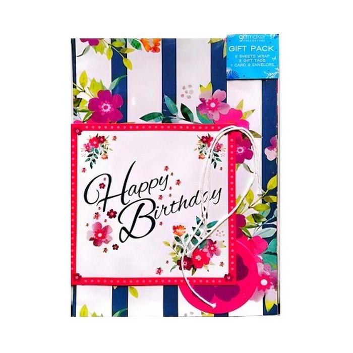 Giftmaker Floral Happy Birthday Gift Wrap And Card Set