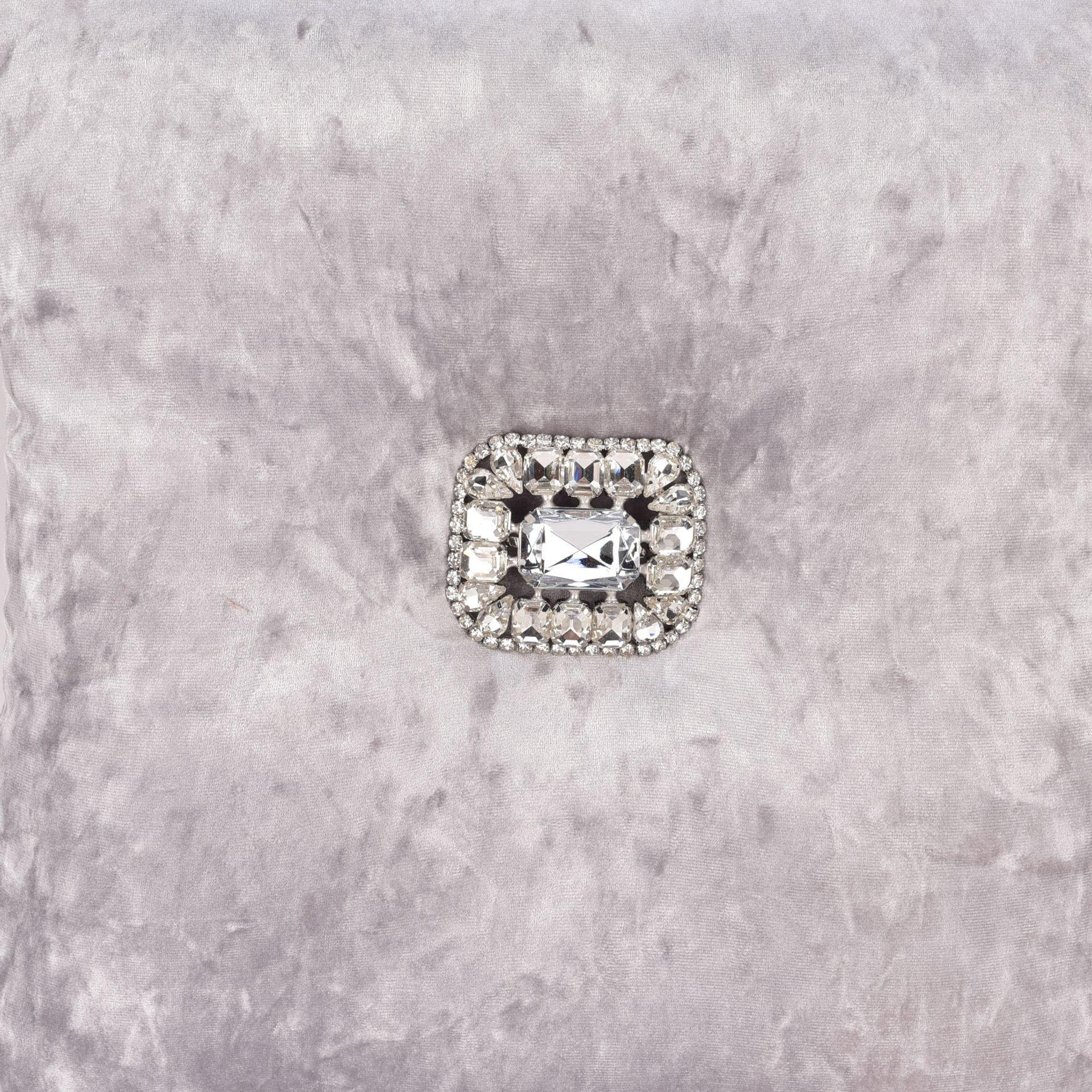 - From the Lavish collection by HESTIA - lavish and decadent homeware evoking the Art Deco era.Details:- Gorgeous crushed silver velvet upholstery- 35cm square cushion- Large crystal embellished central button- Perfect for a glam modern home- Wipe clean only 350 x 350 x 70mm (HWD).