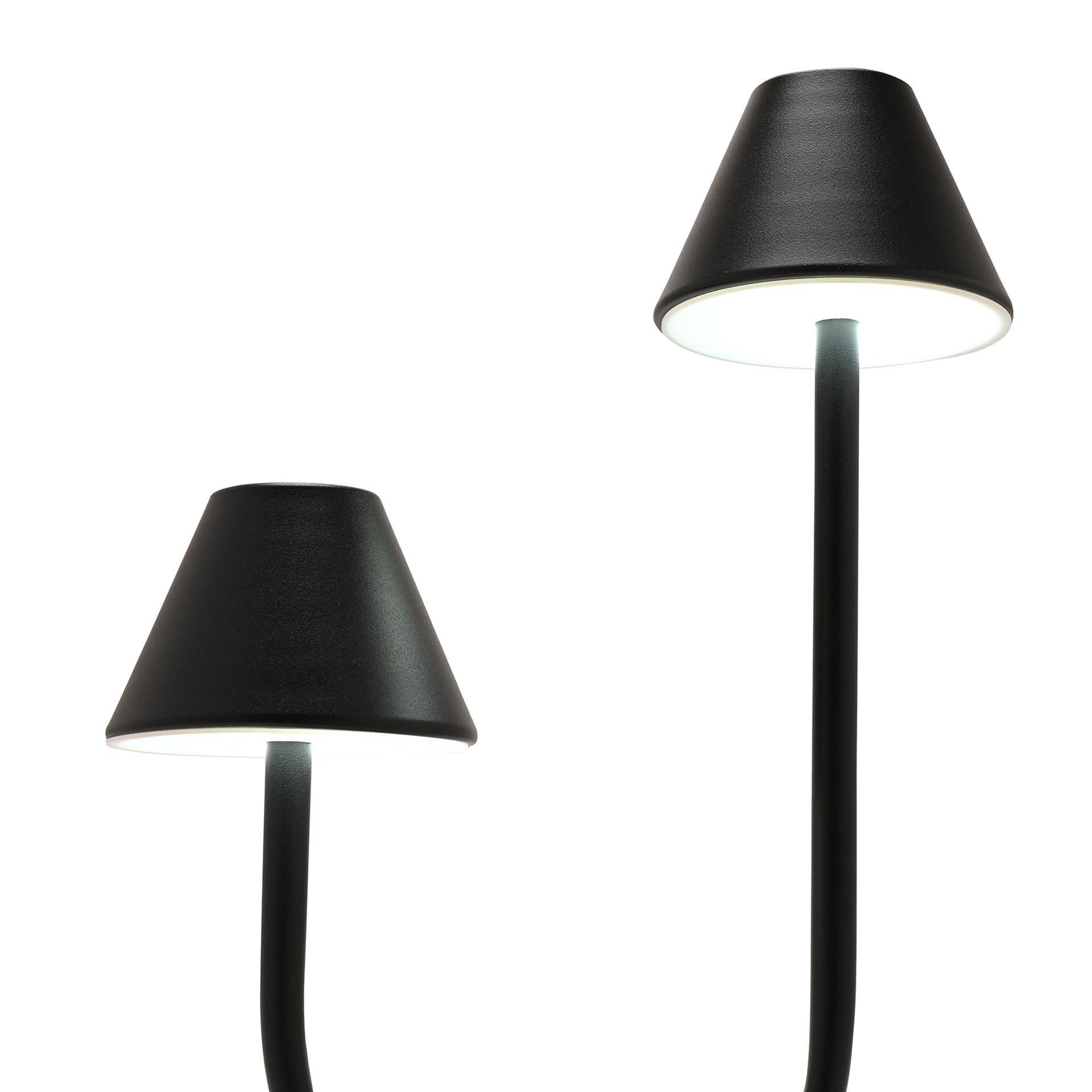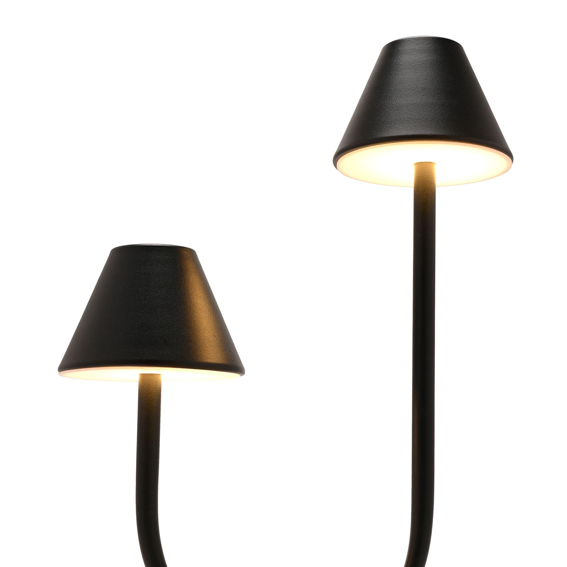 - The Hestia Matte Black USB Touch Double Light Table Lamp.