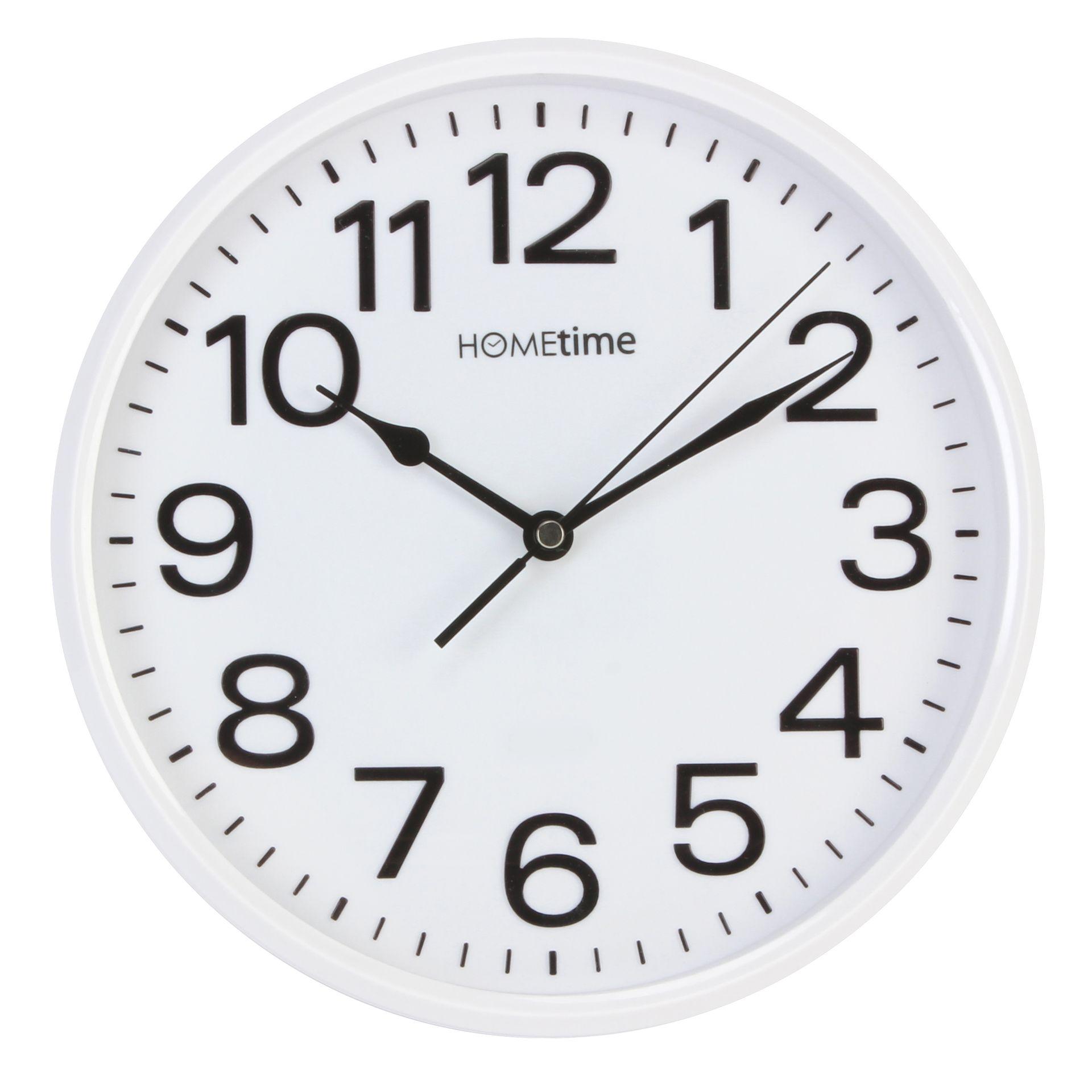 - A classic, white cased wall clock from HOMETIME.