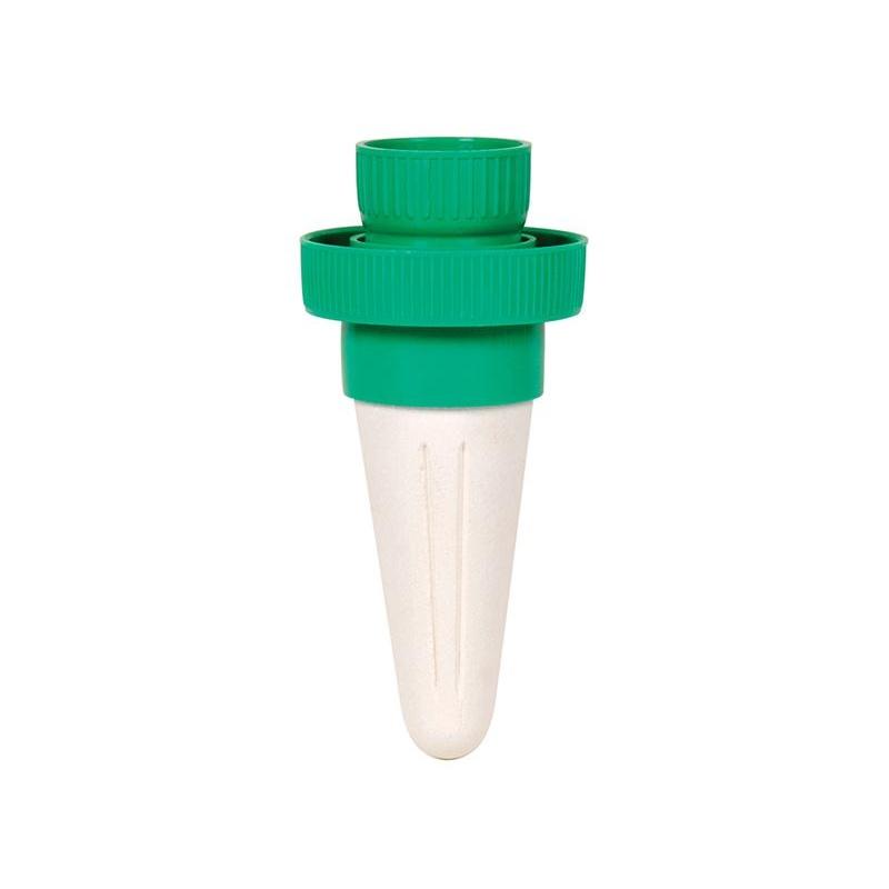 - This simple self-watering system, made up of a ceramic cone and a plastic screw adapter, is easily assembled in a few minutes.