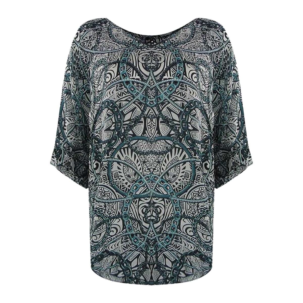 - 100% silk. - Design: Printed. - Sleeve-Type: 3/4 Sleeve. - Neckline: V-Neck.. - UK size :10 UK, FR Size :38 FR, ES Size : 38 EU , DE Size: 36 DE, IT size: 42 EU, US & CA Size: 6 US. - code: UTSY2606