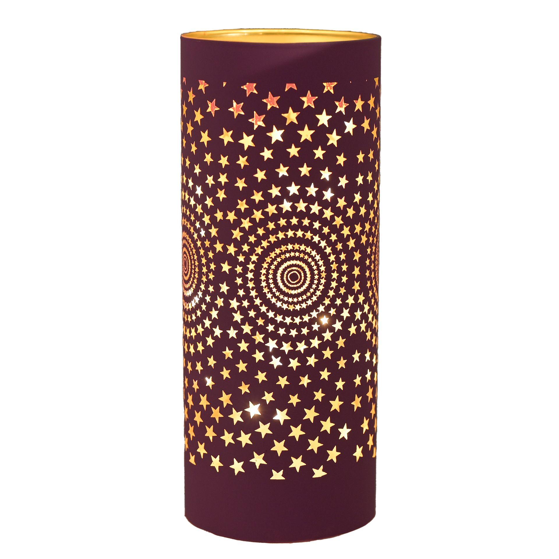 - A large pink starburst LED tube light by THE SEASONAL GIFT CO. This illuminating light makes a delightful twist on the traditional this Christmas. The glass tube light features vibrant pink colouring, complete with transparent star design and gold internal colouring.
