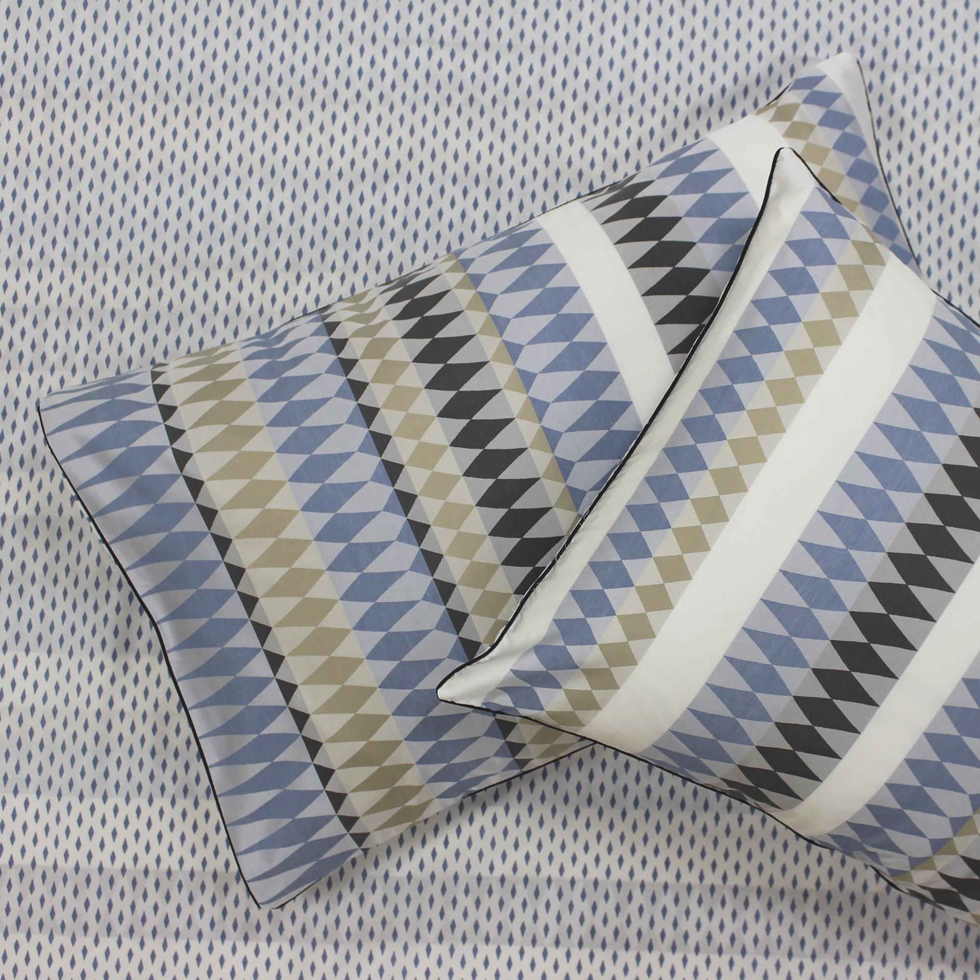 - Crafted with a jacquard weave, the reverse of these pillowcases features a more minimalist geometric design of small blue diamonds on a white backdrop and is finished with cord piping. These housewife pillowcases have an envelope closure and come as a pair.