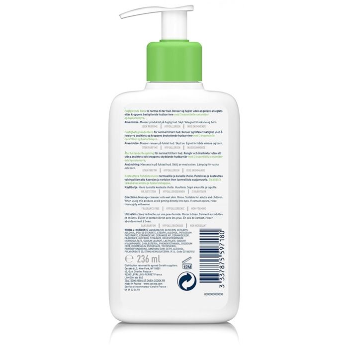 The hydrating cleansing cream from CERAVE gently cleanses and hydrates the face and body. Enriched with hyaluronic acid and 3 essential ceramides, it strengthens the skin barrier and leaves the skin soft and silky. Ideal for normal to dry skin, it offers daily care without altering the skin.. The Seller confirms that its products comply with all applicable laws and are only offered if they comply with Joom's policies and European laws on product safety and conformity.