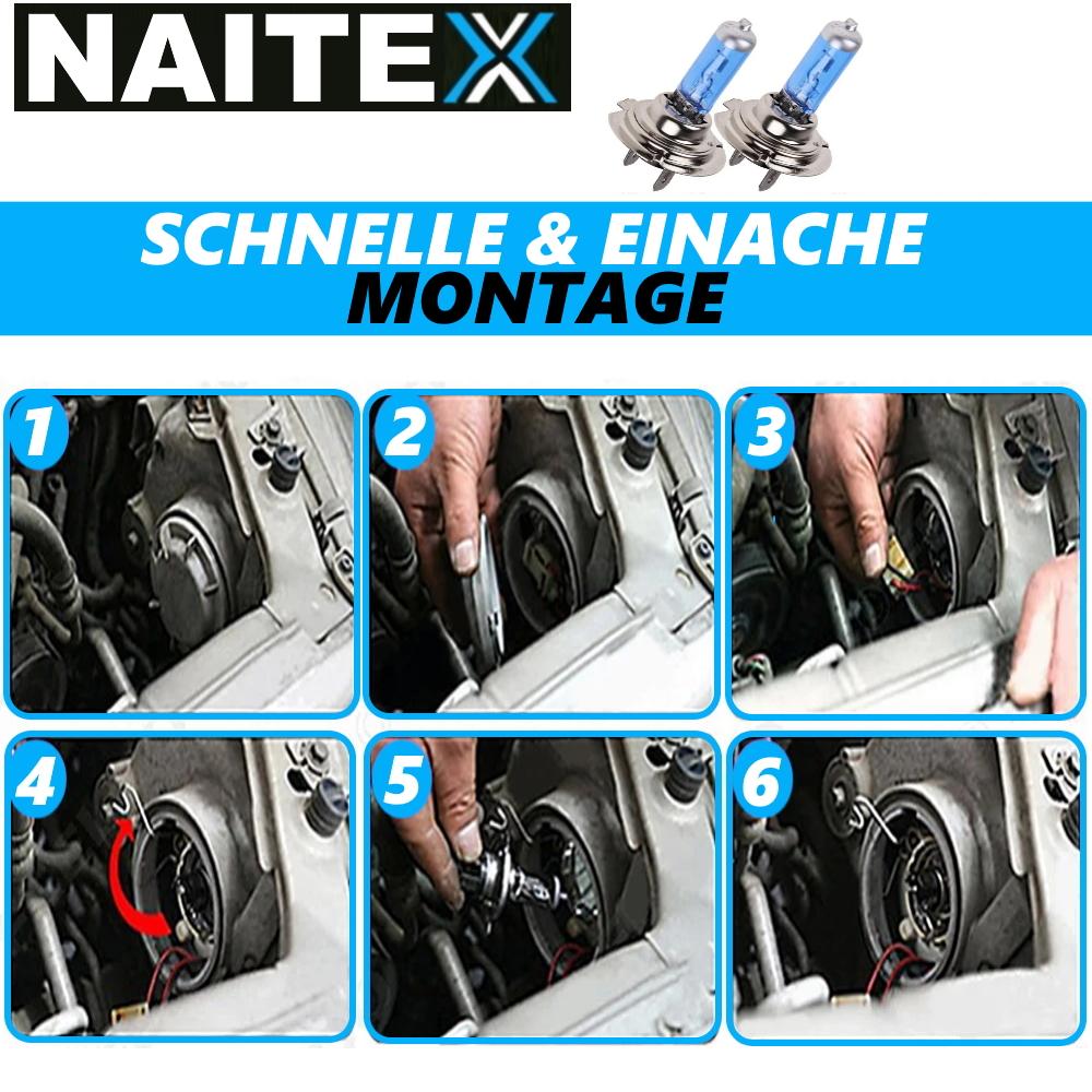 2x NAITEX Super White H7 halogen lamps 8500k 55W 12V