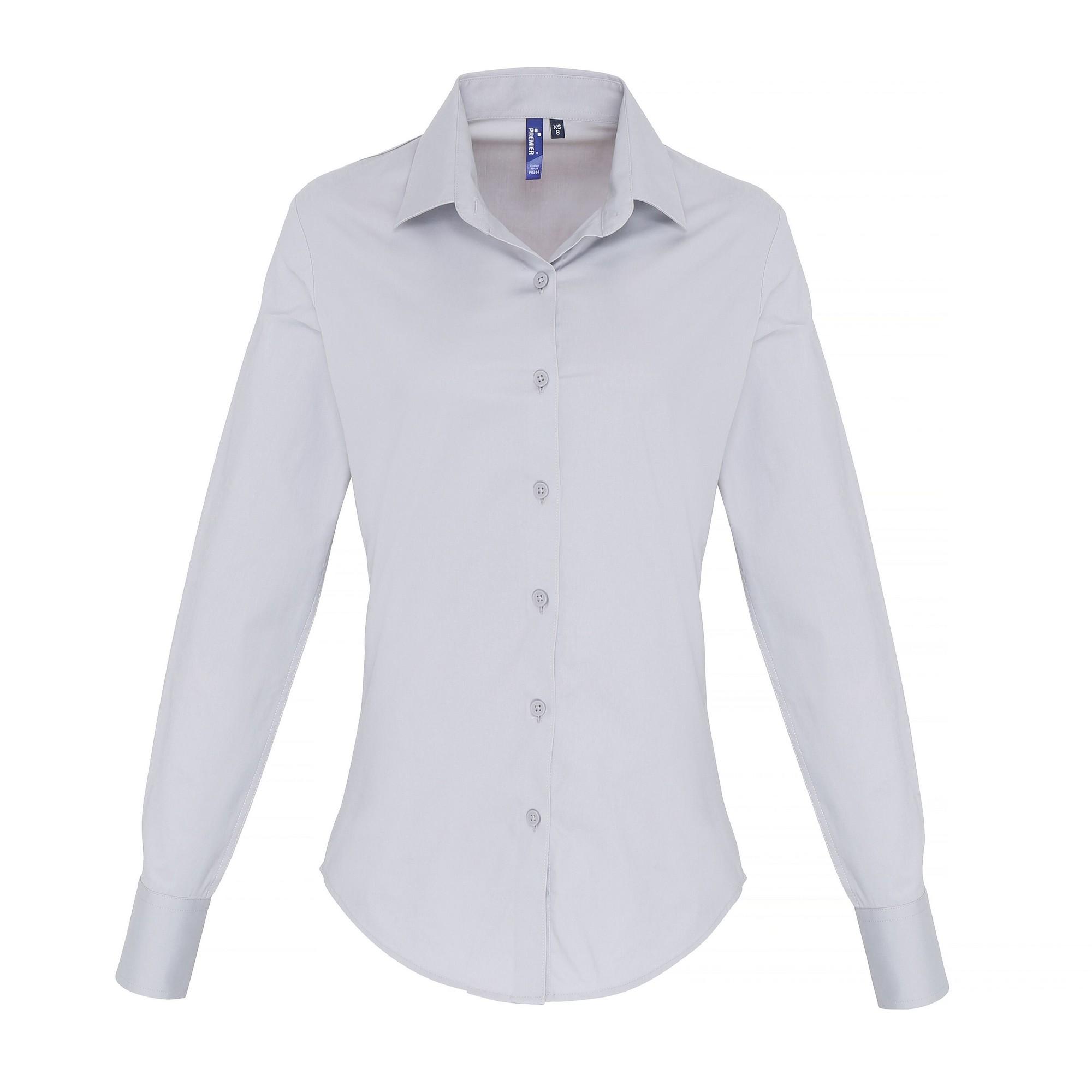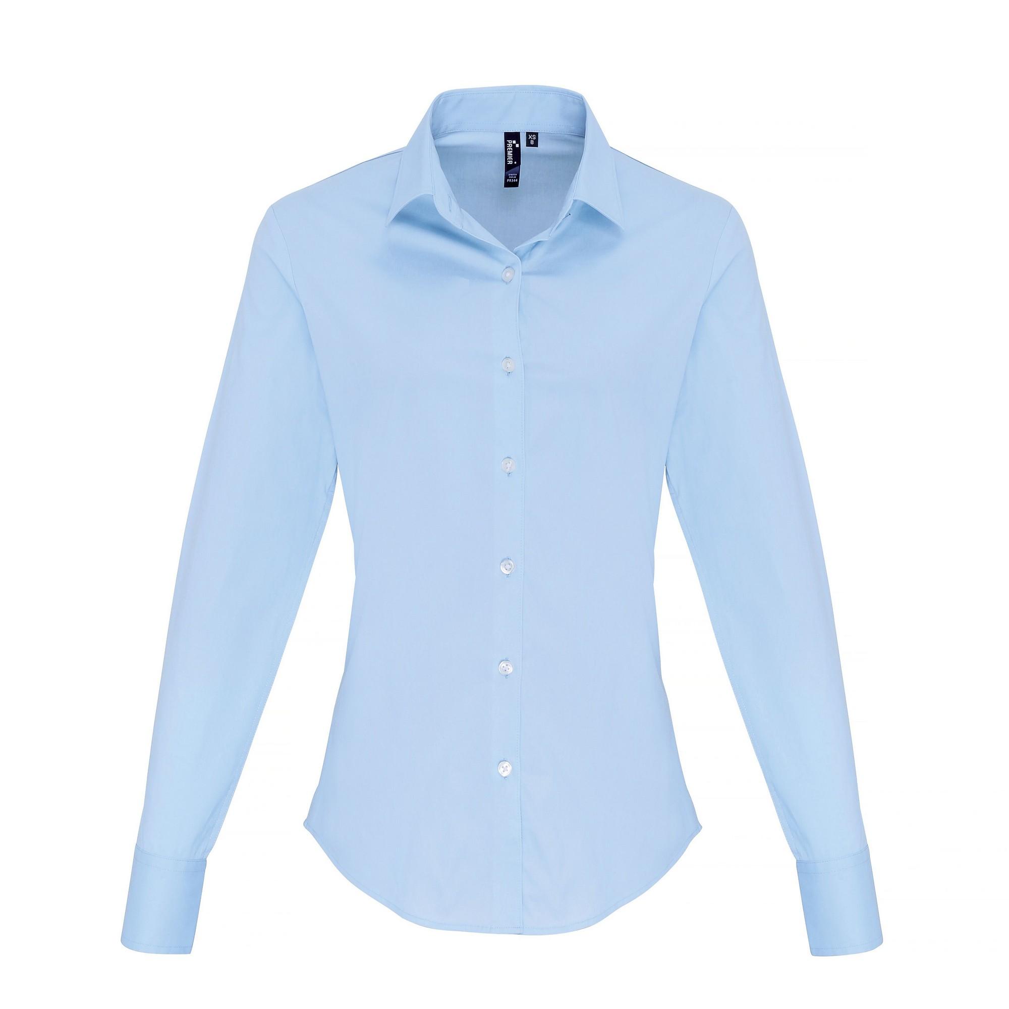 - Womens blouse made from cotton combined with elastane makes for a super soft, stretchy and comfortable fitted style for ladies.