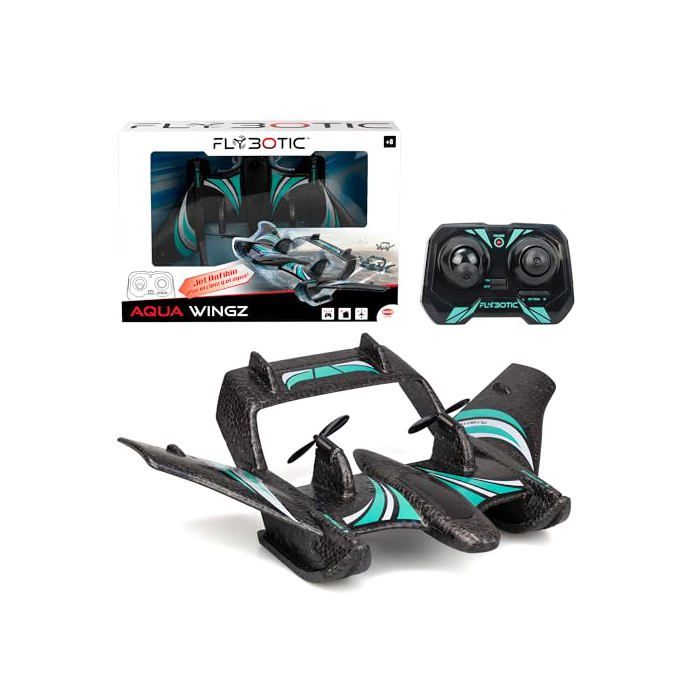 The Bizak Aqua Wingz is a radio-controlled airplane designed for children, offering a unique flying experience thanks to its ability to take off both on water and on land.. Made of ultra-resistant EPP foam, this hovercraft is lightweight and durable, ideal for withstanding shocks and splashes.. It is equipped with a 2-channel control system, making it easy to pick up for beginners and allowing for stable flights.. The integrated LED lights add a captivating visual dimension, allowing play even in low-light conditions. The kit includes the airplane, a remote control, and a USB charging cable, ensuring quick preparation for takeoff.. With dimensions of 35 x 25 x 8 cm and a weight of 0.51 kg, it is easy to carry and handle. Powered by a lithium-ion battery, it is designed for children over 10 years old, with safety warnings to ensure safe use.. The space theme and the multicolored color add a touch of imagination and creativity to the game. This toy is perfect for unisex children, boys and girls, who wish to explore the sky and water with an innovative radio-controlled vehicle.. The Seller confirms that its products comply with all applicable laws and are only offered if they comply with Joom's policies and European laws on product safety and conformity.