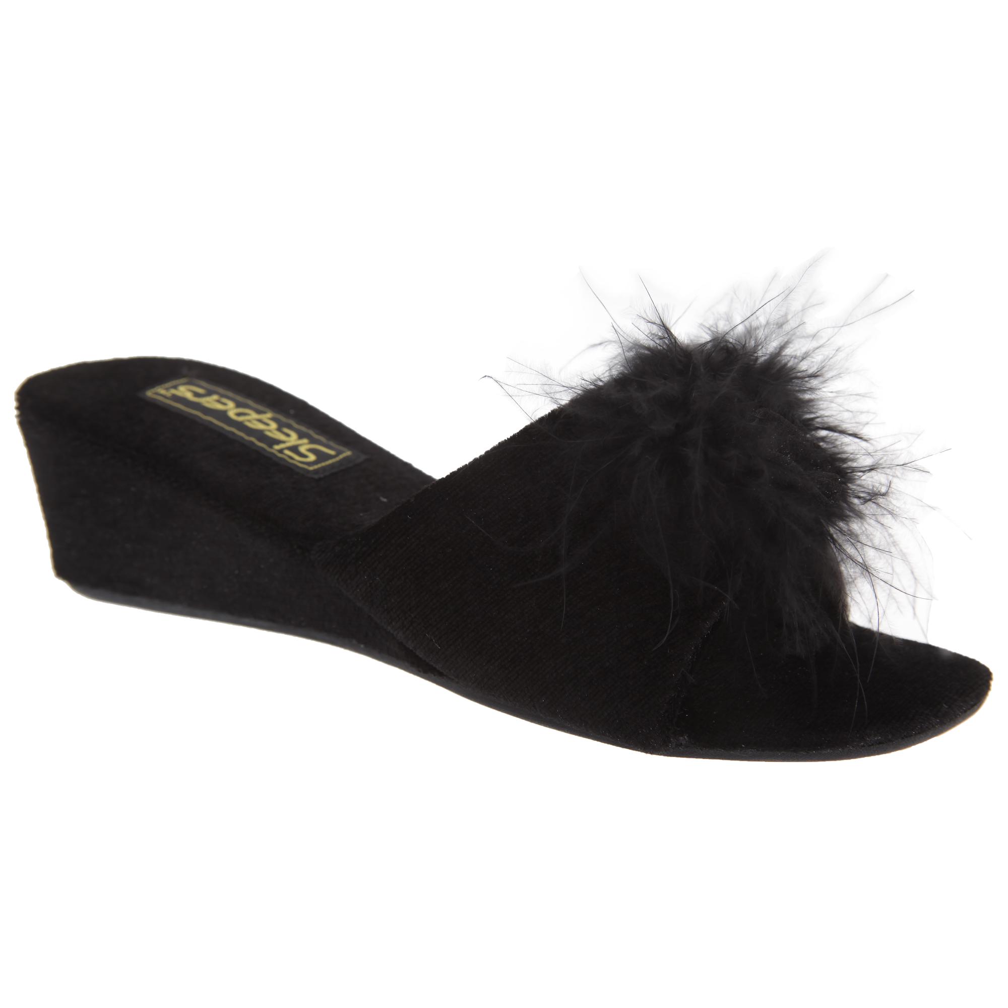 - Jeweled Rosette Boa Mule Slipper.