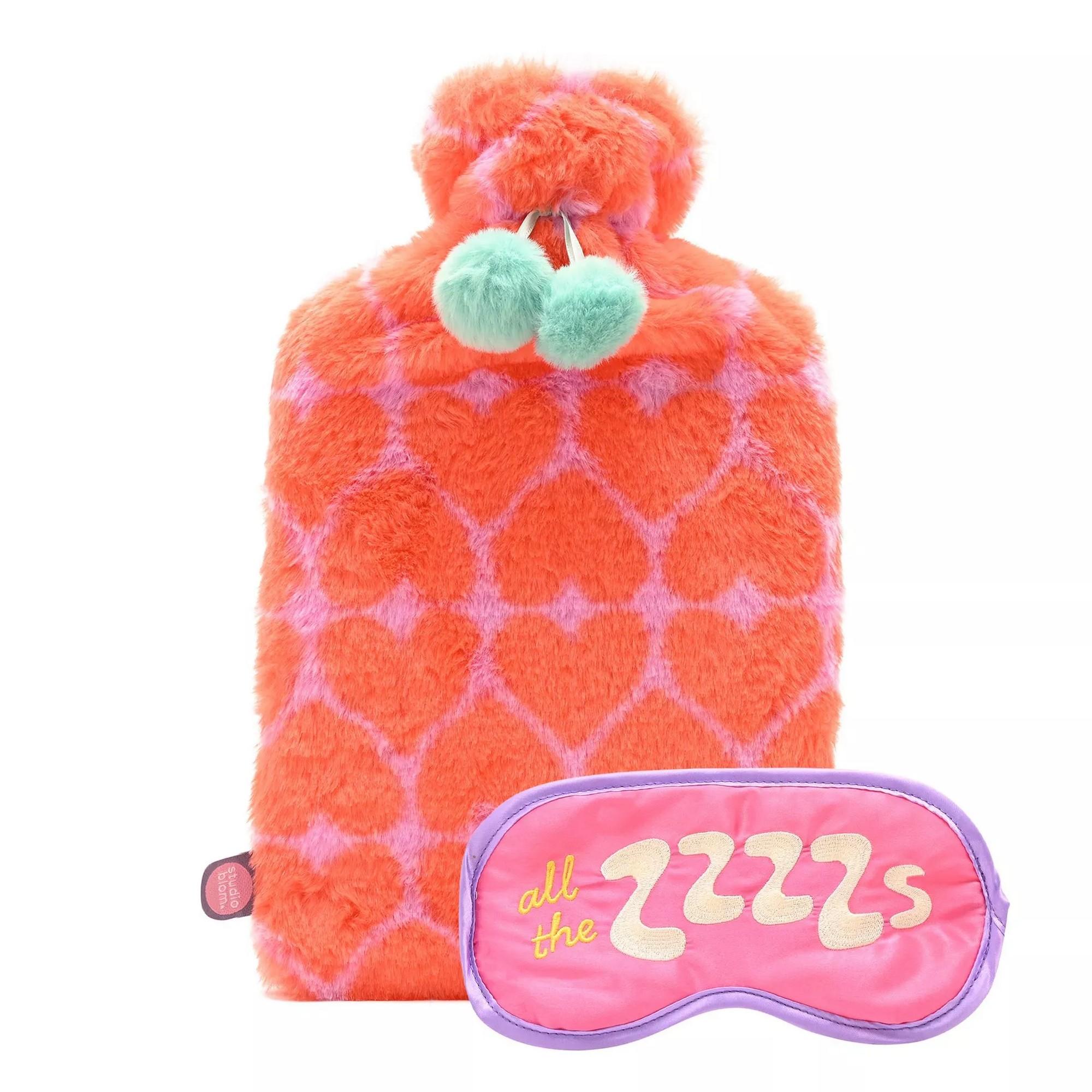 Studio Blom - The Snuggle Is Real - Furry 1.5L Hot Water Bottle And Silk Eye Mask Gift Set