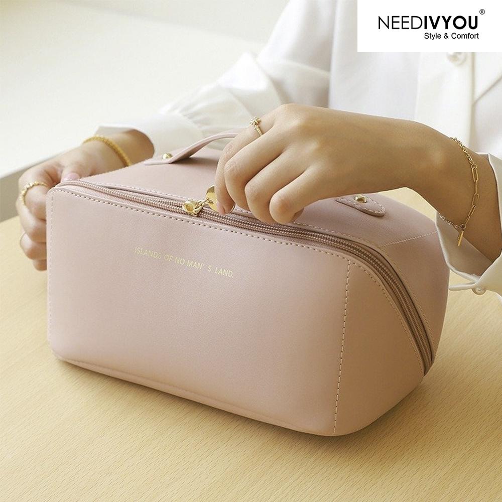 Stylish NEEDIVYOU Pink Cosmetic Bag with Brush Compartment – Waterproof & Travel-Friendly