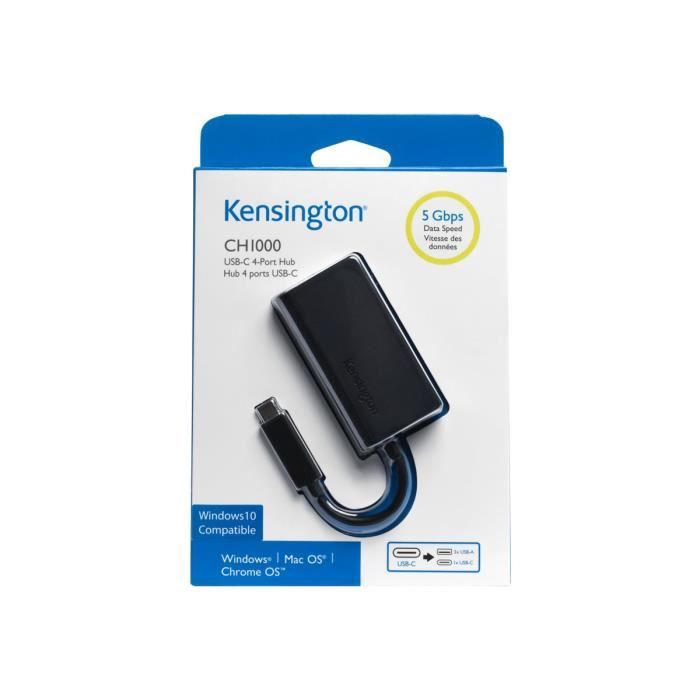 The Kensington CH1000 USB hub is a black external hub with 4 USB 3.1 ports, including 2 USB-A and 2 USB-C. It offers transfer speeds up to 5 Gbit/s thanks to USB 3.1 Gen 1 technology. Installation Plug &; Play, compact design for easy transport. The Seller confirms that its products comply with all applicable laws and are only offered if they comply with Joom's policies and European laws on product safety and conformity.