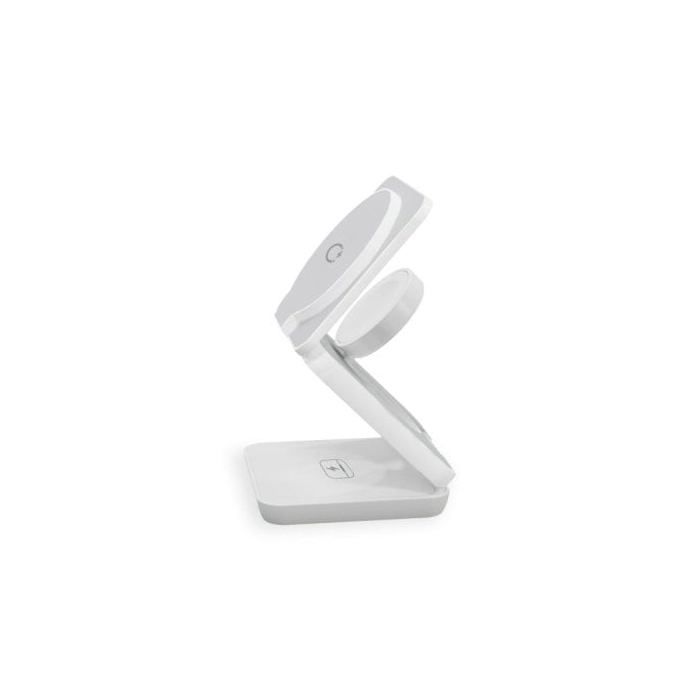The KSIX Cube 3-in-1 wireless charger allows you to simultaneously charge up to 3 devices, including Qi or MagSafe-compatible smartphones, the Apple Watch, and AirPods. Enjoy 15W fast charging in a stylish and practical design. The Seller confirms that its products comply with all applicable laws and are only offered if they comply with Joom's policies and European laws on product safety and conformity.